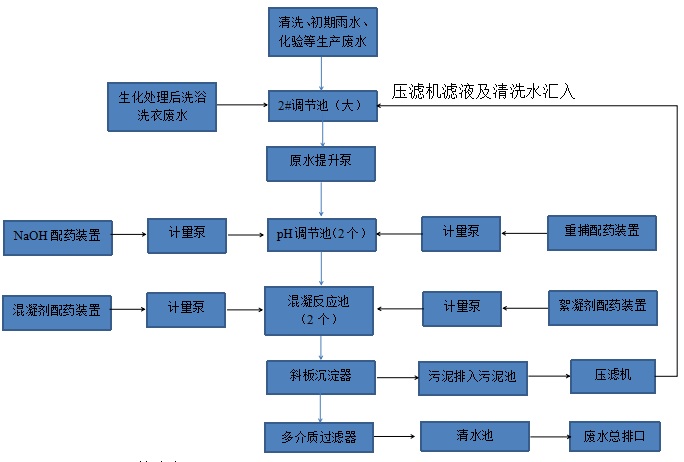 2)生產(chǎn)廢水重金屬工藝流程(絮凝沉淀工藝):